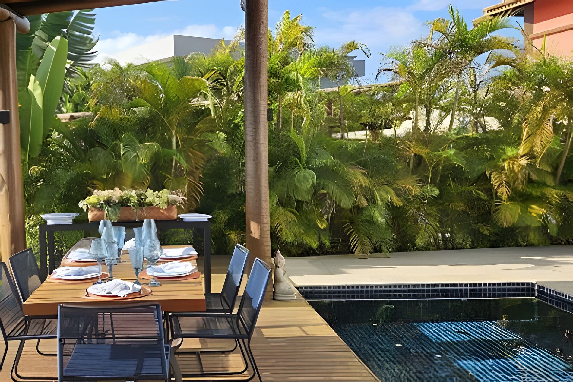 Piscina cercada pelo verde, acesso fácil à praia e a estrutura completa de um dos melhores condomínios da Praia do Forte. Uma casa acolhedora, feita para famílias que buscam dias tranquilos e bem cuidados.